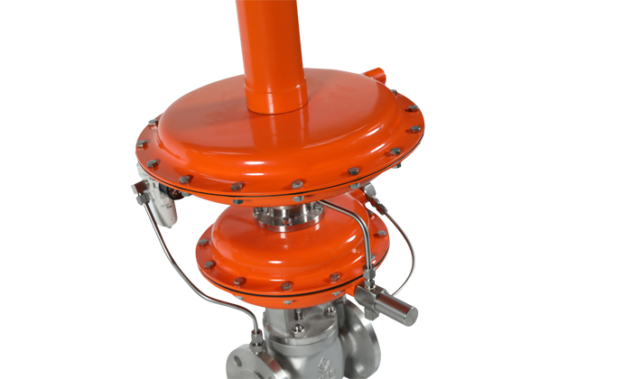 压力设定在指挥器上通过调节弹簧实现,因而方便、快捷、省力省时,可在运行状态下连续设定,且结构简单,维护工作量小。减压比≤4000:1,控制精度高;动作灵敏,密封性好;广泛应用于各种工业设备中气体减压稳压的自动控制,特别适用于储罐的氮封系统;截止阀作为附件,阀门在工作前关闭此截止阀,以防止超压力和杂质进入执行机构,以保护执行机构内的膜片和密封件,及超压力而产生阀门整体打坏现象。